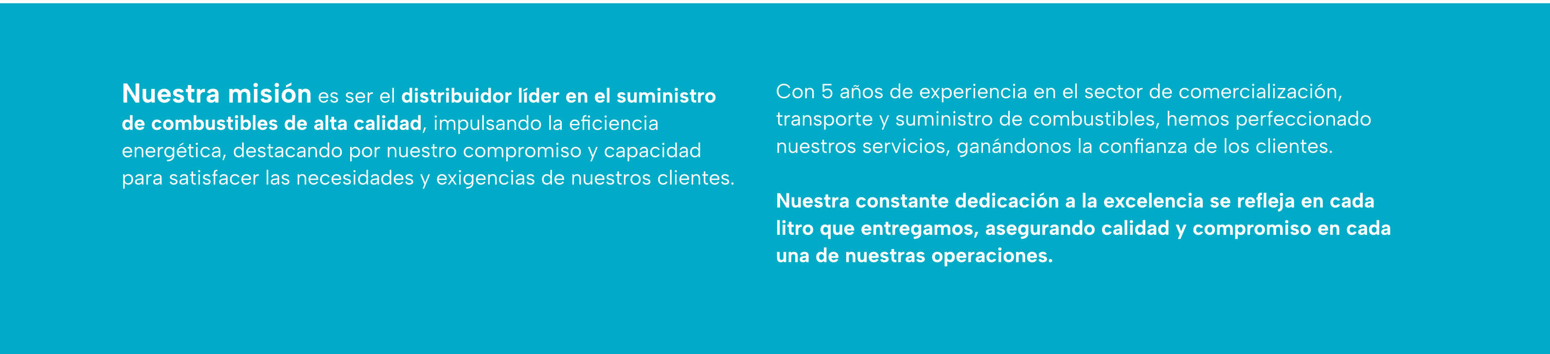Ser el distribuidor líder en el suministro de combustibles de alta calidad, impulsando la eficiencia energética, destacando por nuestro compromiso y capacidad para satisfacer las necesidades y exigencias de nuestros clientes.